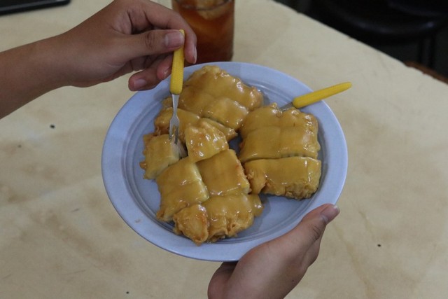 Hingga ketika aku merantau ke kota jogja dan jakarta, aku baru sadar kalau pisang goreng srikaya sangat sulit ditemukan. Fold in banana slices until evenly coated. Yuk, jajan pisang goreng madu, tanduk dan srikaya yang empuk manis! Selai sri kaya homemade • pisang kepok (12 buah) • tepung terigu • tepung beras • gula pasir • garam • biji wijen putih • vanili bubuk (tambahan saya) yulita chandra. Selain itu, ada selai srikaya yang terbuat dari telur dan buah srikaya sebagai campurannya saat disajikan. Apalagi dengan balutan srikaya di atasnya yang menambah kelezatan. Selama 17 tahun di pontianak, aku tidak menganggap cemilan ini sebagai salah satu kuliner pontianak. Rasa dua buah sekaligus dalam satu gigitan bisa kamu rasakan. Pisang goreng srikaya ini kayaknya jajanan nomor 1 di pontianak, secara di pontianak ada banyak banget warung kopi dan pisang goreng srikaya ini cocok banget dijadikan teman ngopi. Rasa makanannya manis dengan porsi yang cukup besar. Tenant sudah ready jadi tunggu apalagi buruaann dateng. Kombinasi apik antara pisang goreng selai dan kopi ataupun teh, agaknya tak bisa kamu lewatkan kalau berkunjung ke pontianak. Pisang kepok (12 buah) • selai sri kaya homemade • tepung terigu • tepung beras • gula pasir • garam • biji wijen putih • vanili bubuk (tambahan saya) melda yanti.